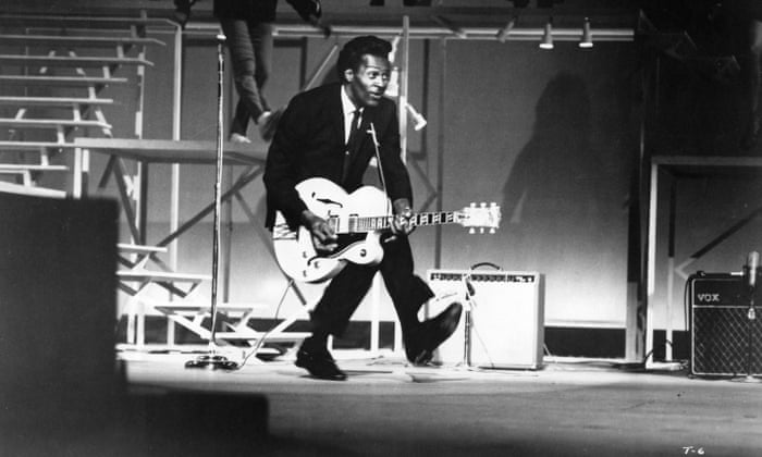 With his lithe, athletic body, high cheekbones and perfectly pomaded hair, Mr. Berry personified the dangerous appeal of rock. He’d grin salaciously and telegraph the lyrics with a wide-eyed, almost childlike exuberance and then shoot across the stage, unleashing a staccato burst of bright, blaring guitar notes.