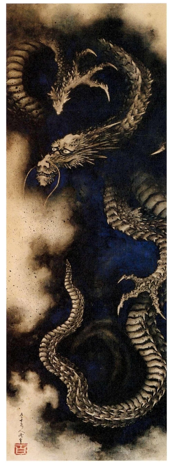 Dragon in Rain Clouds, hanging scroll, ink and colour on paper, 1849
