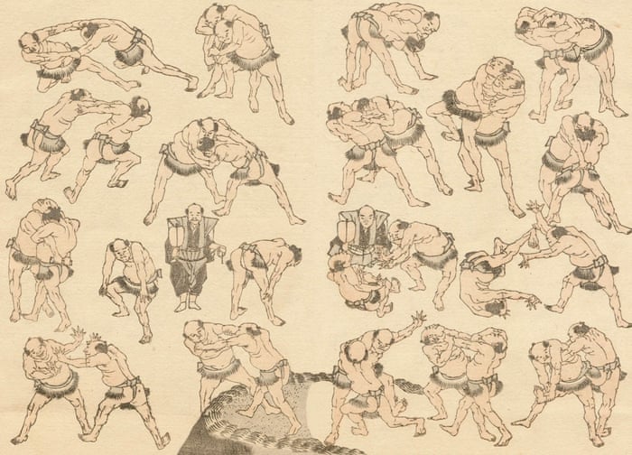 Sumo wrestlers by Hokusai, from a collection of woodblock print sketches begun in 1814