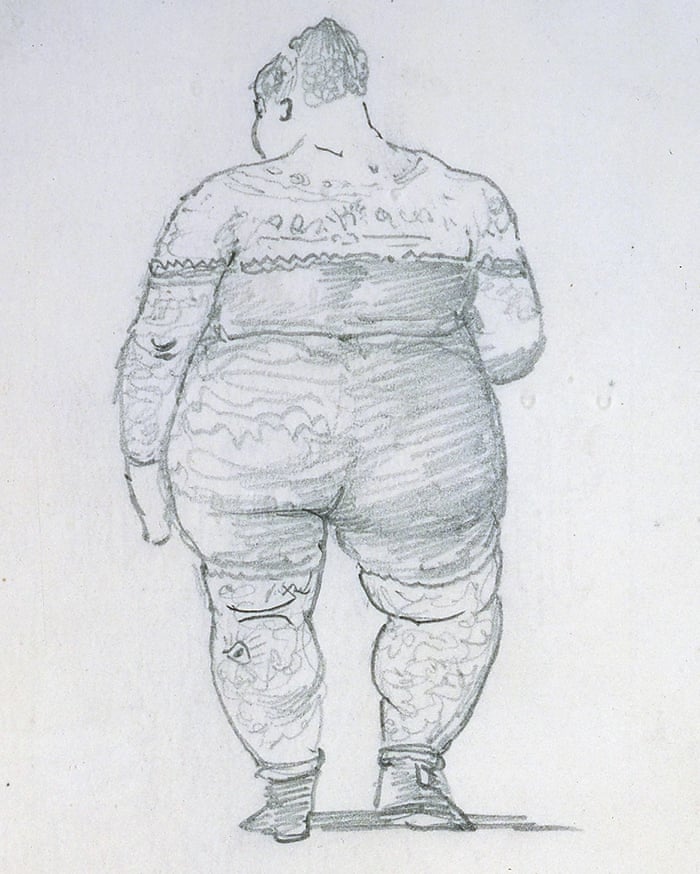 Gaskell and Burne-Jones had both relished seeing De Burgh, who made a good living for decades exhibiting her spectacularly inked skin, turning to reveal the showstopper: the Last Supper tattooed across her back. Burne-Jones drew De Burgh several times, a sturdy but poised and confident figure, and the exhibition will include his drawing made immediately after seeing her at the London Aquarium.