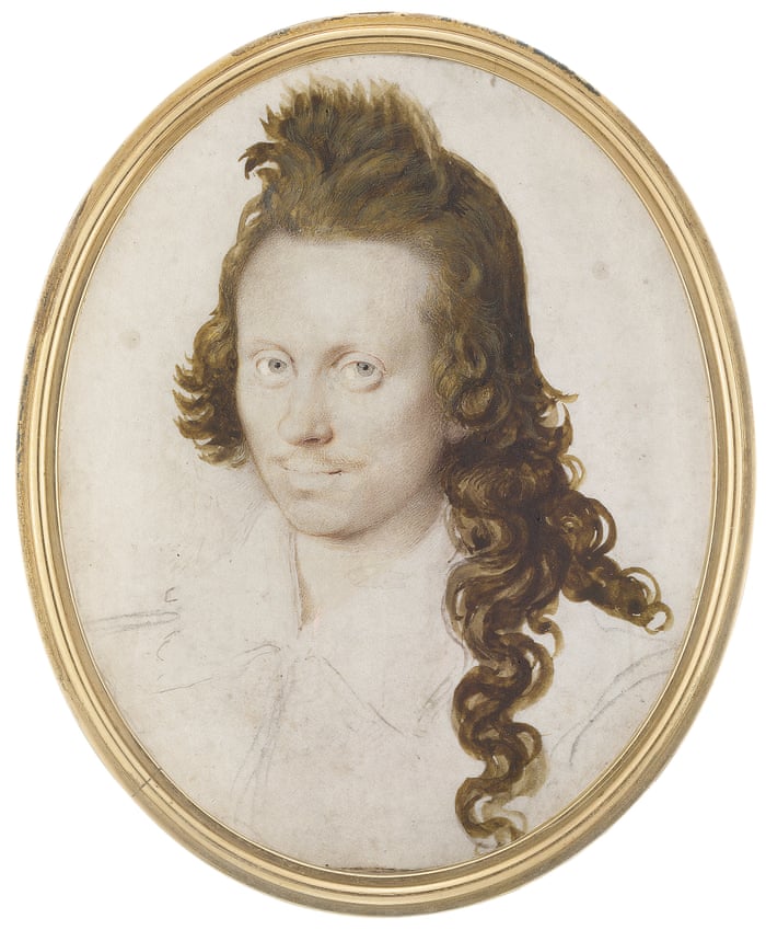 The Earl of Southampton, Shakespeare’s patron and (some say) lover, appears in a staggering image by Isaac Oliver, far more revealing than any of the many other likenesses painted during his lifetime. The notorious love lock descends almost to his navel, the high quiff appears to be held aloft with something like sugared water, and his amused round eyes catch yours with an expression of almost unnerving confidence.