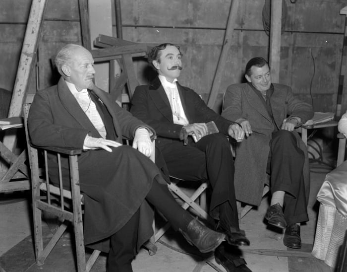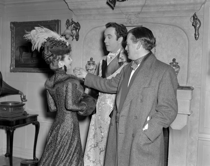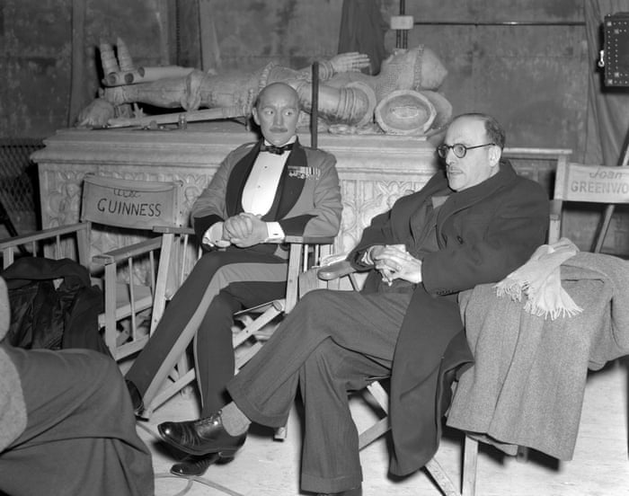 Alec Guinness (left, dressed as General Lord Rufus d’Ascoyne) with producer Michael Balcon