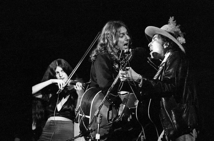 The film is about Dylan’s Rolling Thunder Revue show of US and Canada in 1975 – a 57-date tour in which the troubadour appeared in whiteface makeup, with an extraordinary changing list of support acts that included Joan Baez, Joni Mitchell, Roger McQuinn, Ronee Blakley, “Ramblin’” Jack Elliott, Bob Neuwirth and the violinist Scarlet Rivera. And these weren’t massive arenas he was playing, they were little halls and venues, with publicity sometimes limited to flyers handed out on the day to astonished denizens of the little towns in which the Ken Kesey-style tour bus would cheerfully roll up with the grinning Dylan at the wheel. Try to imagine it happening now.