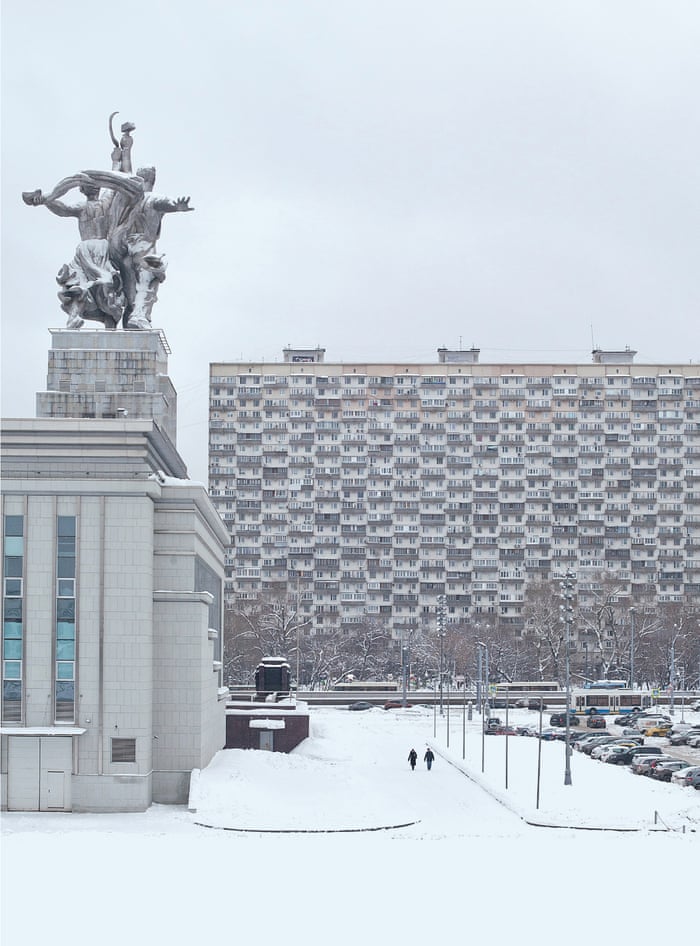 The House on Chicken Legs, a residential block designed by V Andreev and T Zaikin, was built in 1968 and towers above busy Prospekt Mira in Moscow’s Alexeyevsky district. Photograph: Alexander Veryovkin